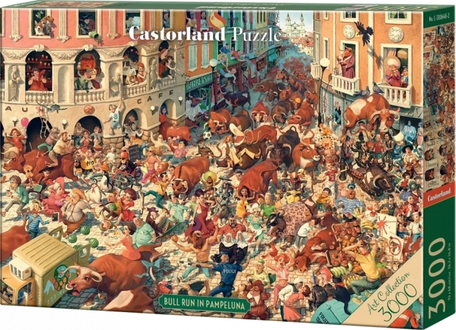 Nyd et originalt kunstnerisk puslespil med motiv af tyreløbet i Pamplona af Waldemar Kazak. Det store format på 3000 brikker byder på mange timers underholdning, detaljerede illustrationer og et grotesk blik på den spanske tradition, som både krævende puslespilsentusiaster og kunstelskere vil sætte pris på.
