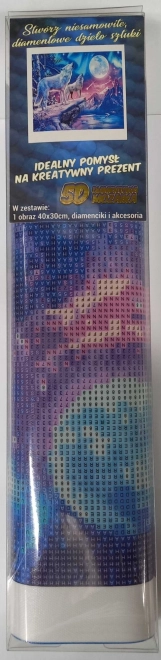 Diamantmaleri Ulve i fuldmåne 30 × 40 cm – komplet sæt til afslapning og kreativ underholdning. Lærred, sten, pen, bakke og voks. Nemt og effektfuldt.