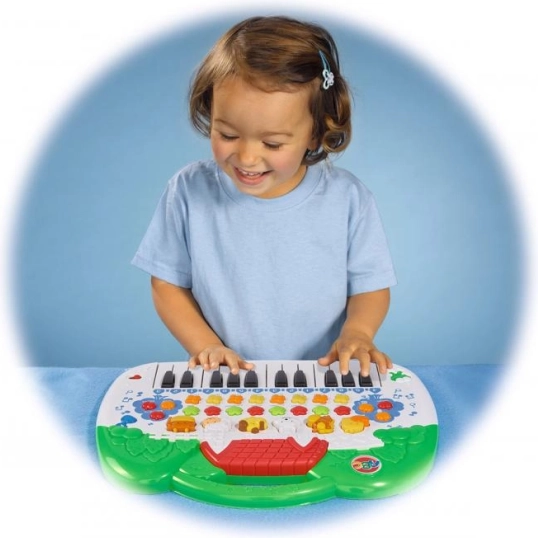 Børneklaver med dyr: 8 instrumenter, 6 dyrelyde, 8 melodier, optagelse, lys, regulering af lydstyrke og tempo. Et godt valg til musikleg.