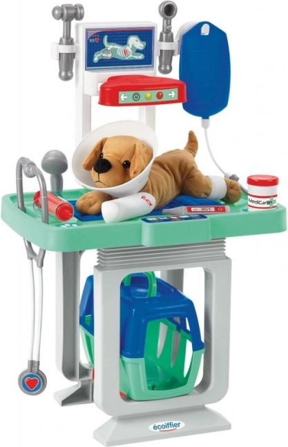 Tag dig af dine yndlingsplysdyr med den alsidige dyreklinik fra ECOIFFIER. Sættet indeholder behandlingsbord, transportboks og en sød plyshund samt lægetilbehør som stetoskop, infusionsflaske, termometer og andre undersøgelsesredskaber. Den ideelle legetøjsklinik for små dyrlæger, der udvikler fantasi og omsorgsevner.