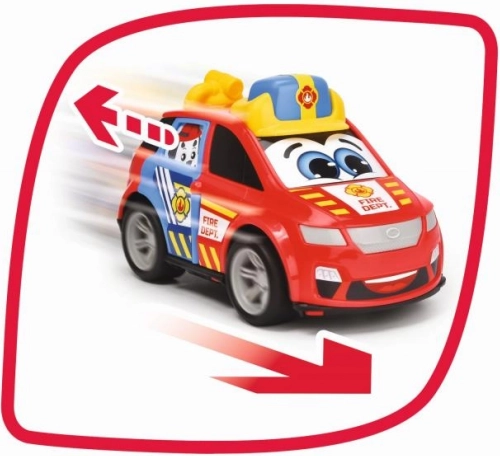 Den røde brandbil med udtryksfulde øjne og glad ansigt er klar til at rykke ud til aktionen. De klare farver og brandmandsinsignier gør denne bil til et fantastisk supplement til enhver leg.