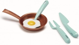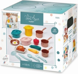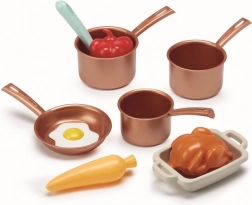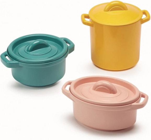 Sættet inkluderer et væld af farverige gryder og pander, som vækker små kokkes nysgerrighed.