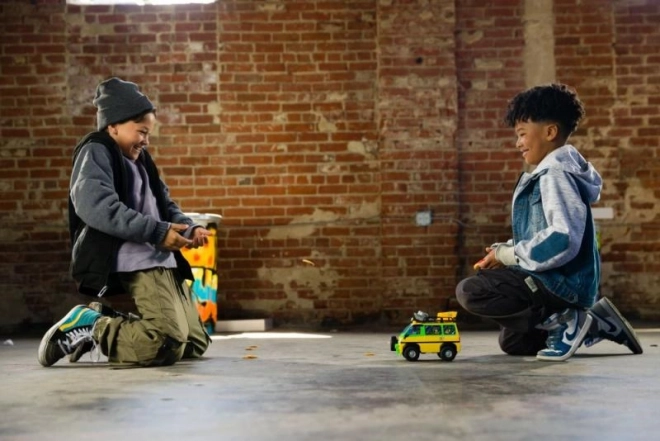 Fjernbetjeningen i form af et pizzastykke gør det let at styre bilen og sikrer sjov ved hver køretur.