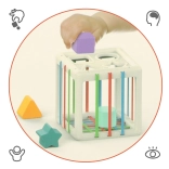Med klare farver og forskellige former vil dette legetøj fascinere ethvert barn og hjælpe med læringen af form- og farvegenkendelse. Hver blok har en unik tekstur til at stimulere barnets finmotorik.