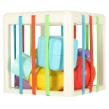 Kontakt med elastiske elementer hjælper med udviklingen af manuelle færdigheder, styrke og hånd-øje koordination. Sikker materialer sikrer, at terningen er egnet selv for de mindste.