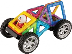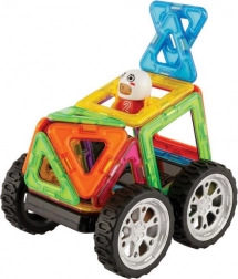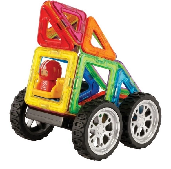 Overraskende mange muligheder med relativt få dele. Byg 30 forskellige biler. Hovedfordelen ved dette byggesæt er 8 dobbeltsidede aktivitetskort af slidstærkt kridtpapir med afrundede hjørner. I pakken er der en billedmanual, som indeholder skabeloner til 30 forskellige biler. Ideel til børn fra 3 til 6 år til at blive fortrolige med de didaktiske egenskaber ved Magformers og som en smagsprøve på, hvad man kan skabe selv med et relativt lille antal dele. Plakaterne med net og byggevejledninger er store, delene er vist i faktisk størrelse, så børn kan begynde at bygge ved meget tydeligt at lægge de rigtige dele direkte på aktivitetsarkene. Antal dele: 18 dele + billedmanual + 19 dobbeltsidede aktivitetskort: 5 firkanter 8 trekanter 1 firkant med gynge 2 hjul 1 figur 1 ekstra hjelm Kreativt magnetisk byggesæt Magformers gør det muligt at samle et stort antal tredimensionelle objekter ved hjælp af todimensionelle plastiske polygoner. Magformers træner finmotorik, stimulerer kreativitet, lærer børn farver og grundlæggende geometriske former. Dimensioner og velvalgte former sikrer maksimal mulig sikkerhed ved legen. Materialet, som byggesættet er fremstillet af, opfylder de strengeste hygiejniske og sundhedsmæssige kriterier. Delene er tilstrækkeligt store, kan ikke sluges og er praktisk talt uknækkelige. MAGFORMERS kan meget fint kombineres med det kendte magnetiske byggesæt Geomag.