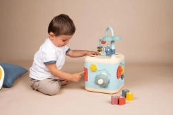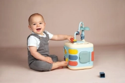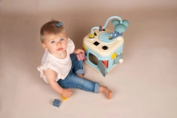 Den multifunktionelle kube LITTLE SMOBY giver børn timevis af klog underholdning. Takket være de mange aktiviteter – fra formsortering og drejehjul til bevægelige elementer og en perlebane – styrkes hånd-øje-koordination, fantasi og koncentration på en naturlig måde. De blide pastelfarver er behagelige for øjet og ikke forstyrrende.