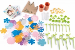 Blomsterskabermaskinen med 104 tilbehørsdele tilbyder kreativ leg og omfattende udstyr. Indeholder klistermærker til dekoration og en overskuelig vejledning med inspiration. Blomsterne kan laves af materialeblade, som er perforerede for at lette arbejdet for de små florister.