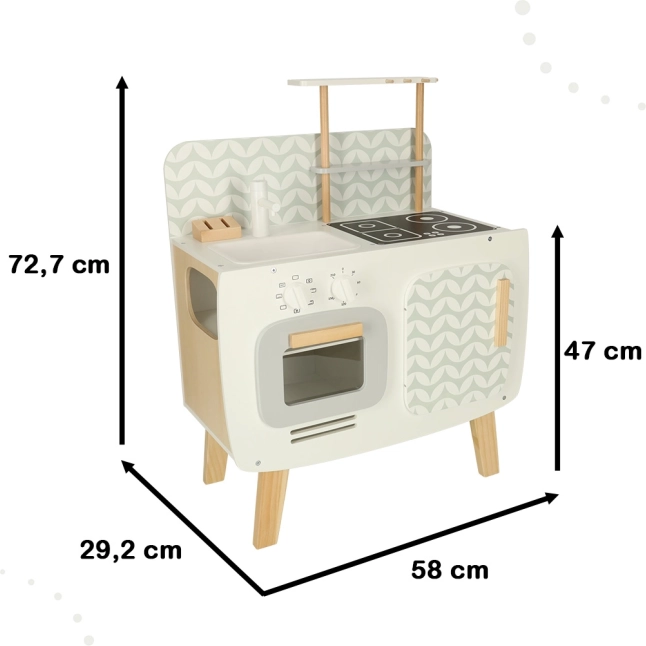 Børnekøkkenet fra Lulilo er en perfekt miniature af et rigtigt køkken. Med dimensioner passende til små chefkokke tilbyder det en autentisk oplevelse og udvikler deres interesse for madlavning.