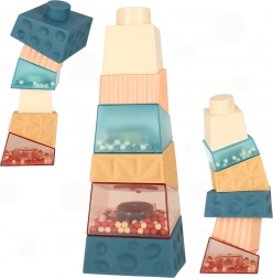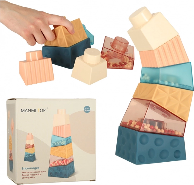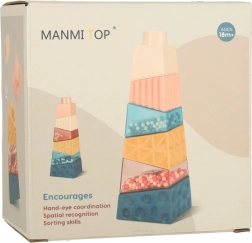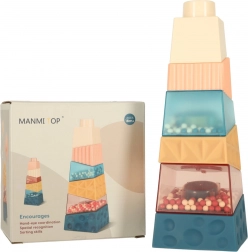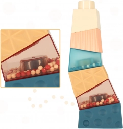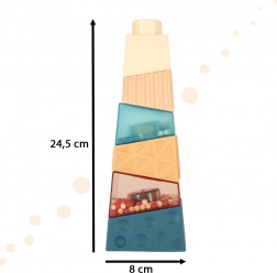 Sensorisk tårn Montessori er et pædagogisk legetøj, der stimulerer syn og berøring ikke kun gennem farverige og teksturrige klodser, men også gennem kuglerne inde i nogle af dem.