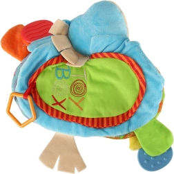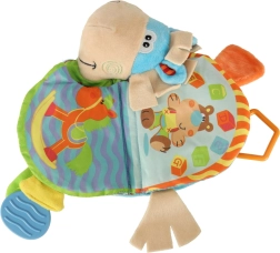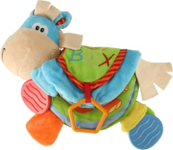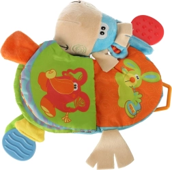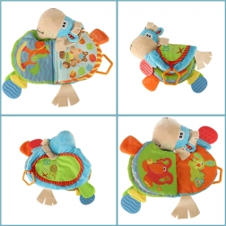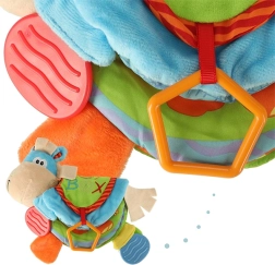 Bideringene placeret på æslets ben bringer lindring til ømme gummer og forskellige teksturer stimulerer sanserne. Med denne foldbare bog kan du underholde barnet hjemme såvel som på farten, da den nemt kan fastgøres til barnevognen, hvilket sikrer sjov hele dagen.