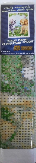 Opdag et afslappende, kreativt diamantmalingssæt med motiv af en hvalp og en killing i størrelsen 30 × 40 cm. I pakken finder du alt, hvad du behøver for at skabe et funklende billede – lærred med fortrykt motiv, sten, pen, bakke og voks. Denne aktivitet giver behagelig afslapning, kreativ underholdning for alle aldre og et smukt resultat, der egner sig til indramning.