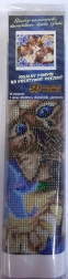 Pakken indeholder: lærred med fortrykt motiv, pen til påføring af sten, bakke til at hælde sten i, voks til fastgørelse, sæt med farvede sten.