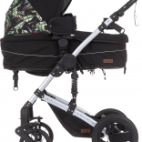 Den lette, men solide konstruktion med indbygget affjedring udjævner ujævnheder, og sammen med de store hjul og pålidelig bremse sikrer den stabil og glidende kørsel. Den praktiske store kaleche med kiggevindue beskytter mod solen, mens det rige tilbehør dækker de fleste daglige behov.