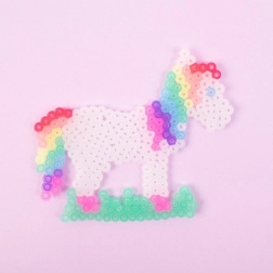 I den praktiske spand finder du en farvemix: blå, rød, lilla, grøn, orange, hvid, gul og lyserød. Perlerne har en højde på ca. 5 mm, diameter 5 mm og huldiameter 2,5 mm, hvilket sikrer nem brug både ved strygning og snøring.