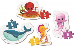 Opdag den fascinerende verden af havliv med dette Clementoni puslesæt designet til de mindste. Sættet indeholder fire puslespil med markant forskellig sværhedsgrad, der sikrer underholdning og udvikling af dit barns tanker.