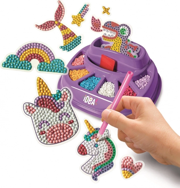 Opdag et kreativt sæt til diamantmaleri, hvor du kan lave funklende klistermærker med enhjørninger og andre motiver. Med den medfølgende pen påfører du nemt 3D-rhinsten efter skabelon eller egen fantasi. Aktiviteten udvikler finmotorik, koncentration og tålmodighed og giver afslappende kreativitet for både børn og voksne.