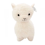 Den cremefarvede plyslamа fungerer som krammelegetøj, dekoration eller samlerobjekt.