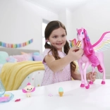 Flyv på fantasiens vinger med den lyserøde pegasus fra Barbie! Denne magiske pegasus tilbyder lys- og lydeffekter, komplet med en magisk lille hund og søde tilbehør.