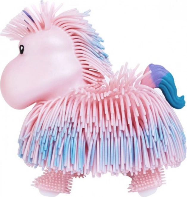 Oplev magien med den perlemorsfarvede Jiggly Pets enhjørning, som bliver til en livlig ven ved et tryk på knappen på hovedet. Børn vil elske dens glade lyde, gang og nuttede gyngen med kroppen samt halevrikken i takt til melodier. Den bløde, behagelige frynsede overflade stimulerer sanserne og indbyder til både kram og leg.