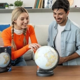 Denne premium 3D puslespils‑globus med en diameter på 22 cm består af 540 solide, let buede plastbrikker, som passer fejlfrit sammen. Efter samling danner de en glat og stærk kugle placeret på en stabil base med markerede breddegrader. Takket være det integrerede LED‑modul lyser globussen imponerende og fungerer både som dekoration og læringsredskab.