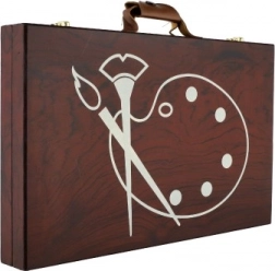 Trææsken fyldt med farver og værktøjer er den perfekte ledsager for unge skabere. Indeholder alt hvad du behøver til maling og tegning, i en elegant og nemt bærbar pakke:
