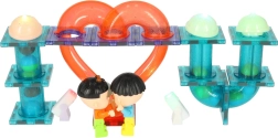Børn kan eksperimentere med former, tyngdekraft og kuglernes hastighed, prøve forskellige ruter og teste konstruktionen med både almindelige og lysende kugler. Legen støtter koncentration, tålmodighed og samarbejde.