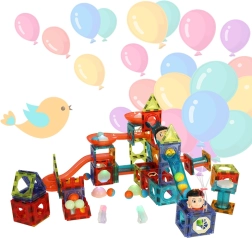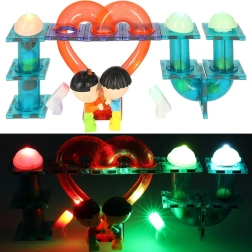 Omfattende sæt magnetiske byggedele til børn fra 3 år, som gør det muligt at bygge en storslået kuglebane samt 2D/3D-konstruktioner. De gennemsigtige dele forbindes med magneter, og nogle af elementerne lyser – inklusive kuglerne, som tændes under bevægelse og skaber en fantastisk lysshow-oplevelse. Sættet udvikler finmotorik, rumlig forestillingsevne og logisk tænkning og er ideelt til sjov for hele familien.