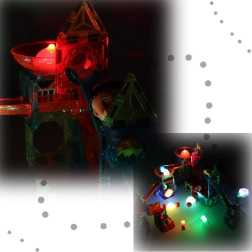 Bevægelsen af kuglerne aktiverer lyset, og sammen med de oplyste dele skaber de et fængende lysshow, som motiverer børn til yderligere byggeri og eksperimenter.