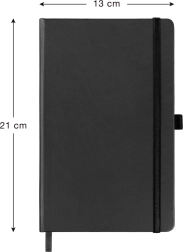 Elastisk lukkerem, penneholder og indre lomme holder alting samlet. Et bogbånd gør det let at finde hurtigt tilbage.