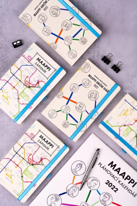 Maappi er et velgørenhedsprojekt, hvis hovedperson er den syttenårige Matěj Hošek, som siden barndommen har kæmpet med en svær form for Aspergers syndrom. Hans forældre vidste længe ikke, hvordan de skulle hjælpe ham, indtil de en dag gav ham et kort over Prags metro. Siden da tegner Matěj sine unikke planer over undergrundsnet. De bedste værker fra den unge designer finder du på siderne i denne notesbog, og ved at købe den bidrager du til projekter, der forbedrer livet for mennesker med handicap.
