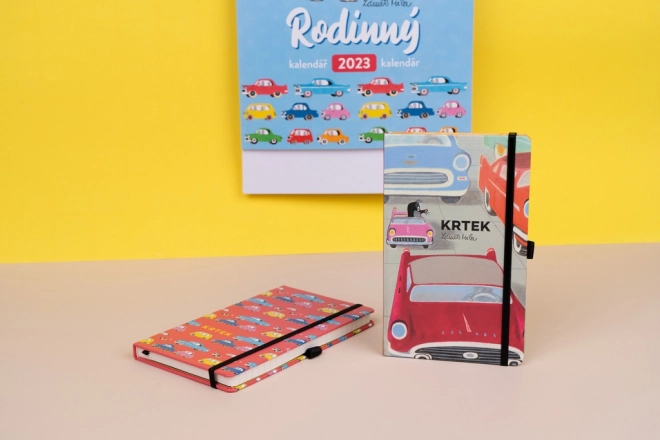 Elegant linjeret notesbog med motivet Mulvarpen og bilen i hårde omslag er ideel til daglige notater, dagbog og arbejdsnoter. Den tilbyder praktisk elastiklukning, penneholder og indre lomme til småting. Indeni finder du 172 prikkede sider på gult papir til overskuelig og kreativ skrivning.