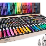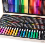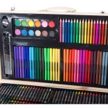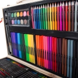 Komplet kreativsæt i et elegant træetui til både børn og voksne med op til 180 dele til tegning og maling. Takket være det praktiske etui med håndtag har du alt overskueligt samlet ét sted og nemt at tage med. Ideelt til at udvikle kreativiteten, øve forskellige teknikker og skabe i det uendelige derhjemme, i skolen og på farten.