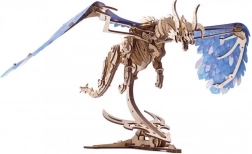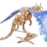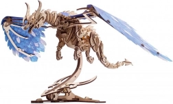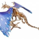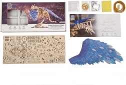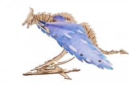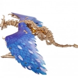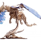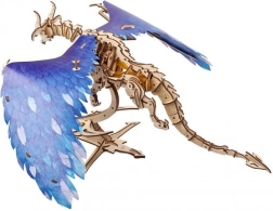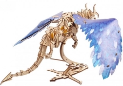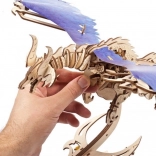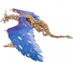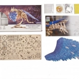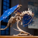 Laserudskårne dele i krydsfiner passer nøjagtigt sammen og skaber en realistisk dragemodel med markante blå vinger, klar til at imponere både på standeren og i aktion.