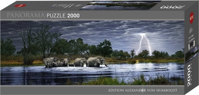 Panoramapuslespil Elefantflok Botswana fra serien Alexander von Humboldt Edition byder på en betagende udsigt over den vilde natur. Indeholder 2000 brikker for en lang og underholdende puslespilsudfordring.