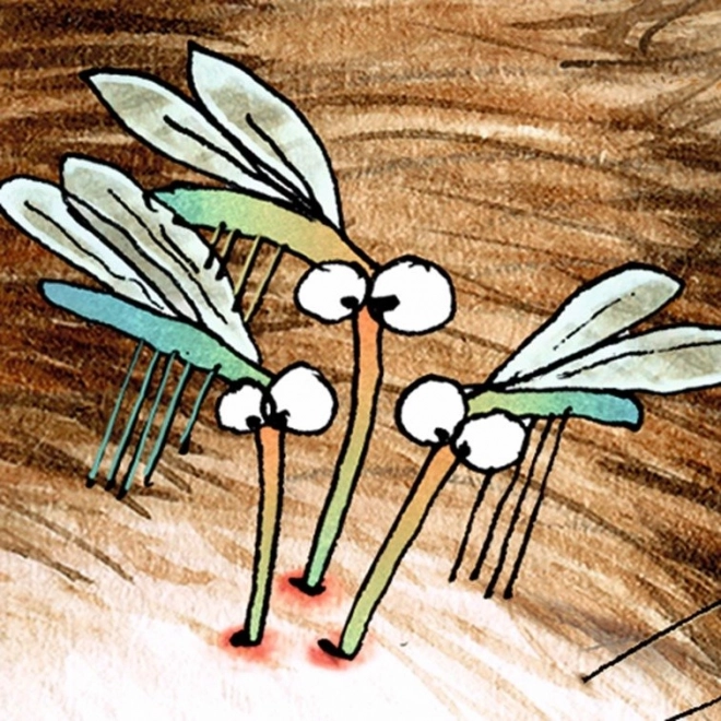 - Motiv af Marino Degano – humoristiske detaljer og farverig illustration