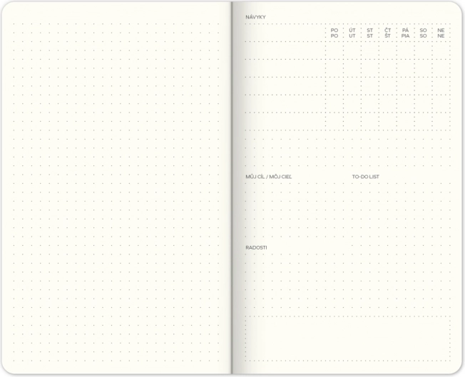 Vil du tilpasse din planlægning? Denne udaterede ugentlige kalender My Bullet Planner i det praktiske format 13 × 21 cm er ideel for begyndere i den kreative notatverden. Den lader dig spore vaner, skrive to‑do‑lister og planlægge personlige mål – og takket være det udaterede kalendarium kan du starte når som helst. Udgave på tjekkisk/slovakisk.