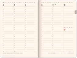 Elegant ugekalender med magnetlukning i et kompakt 11 × 16 cm format tilbyder et seks-sproget kalendarium, kolonneopdeling med plads til noter for hver dag, oversigt over internationale helligdage, liste over tjekkiske og slovakiske navne, årsoversigter 2024/2025, adressebog og en praktisk lomme på den bagerste inderside af omslaget. Det stilfulde batikmønster gør den daglige planlægning til en fornøjelse.