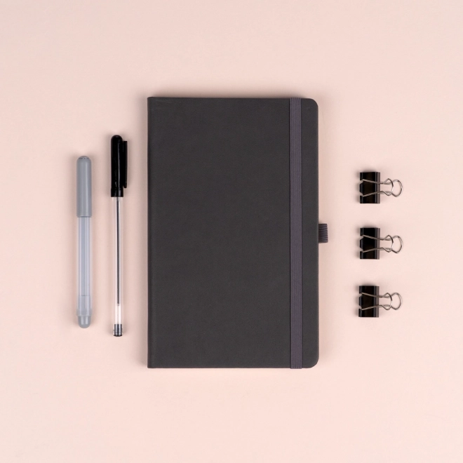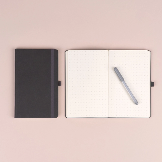 Den grå prikkede notesbog NOTIQUE i formatet 13 × 21 cm kombinerer minimalistisk design og pålidelig funktionalitet. Takket være den solide bogbinding og de afrundede hjørner tåler den daglig transport i rygsæk eller taske. Praktiske detaljer – elastik, penneholder og stofbogmærke – sikrer, at du har alt ved hånden og altid styr på dine noter.