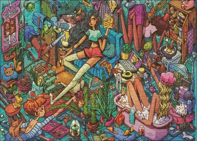 Dyk ned i en fantasiverden med dette enestående puslespil af den kendte karikaturkunstner Marija Tiurina. Den trekantede æske er ikke kun æstetisk iøjnefaldende, men også praktisk til opbevaring. Mål på det færdige puslespil er cirka 70 x 50 cm, hvilket giver et smukt overblik over den detaljerede illustration.