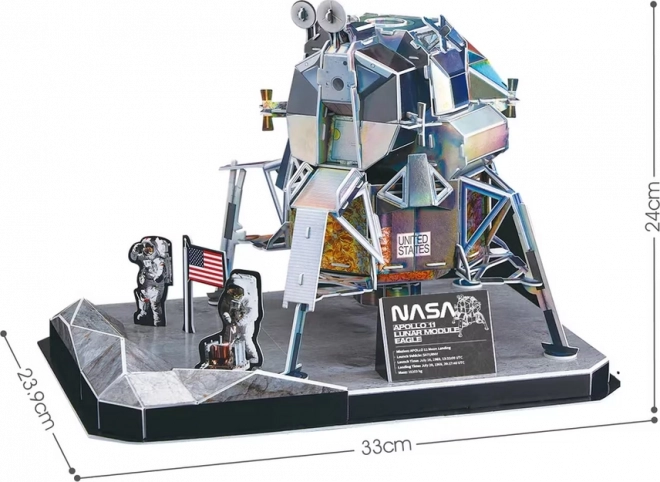 - Autentisk design: Gengiver trofast månelanderen brugt under Apollo 11-missionen.