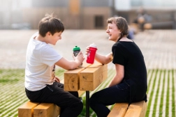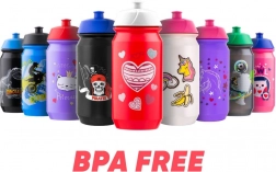 Flasken er fremstillet af genanvendelige plasttyper, der opfylder de strenge europæiske standarder 2011/10 for materialer beregnet til kontakt med fødevarer. Takket være skruelåget og den ergonomiske form ligger den godt i børnehånden og lækker ikke.