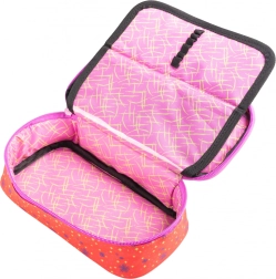 Dette skolepenalhus med den populære rulleskøjteløber SOY LUNA udmærker sig ved stærk konstruktion og et funktionelt indre layout. Takket være den udklappelige skillevæg har du blyanter, farveblyanter og kuglepenne altid overskueligt lige ved hånden, mens lynlåslommen sikkert gemmer viskelæder, blyantspidser eller små tilbehør.