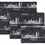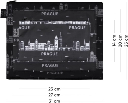 Hver taske har praktisk topåbning med lynlås og kontrastprint med PRAHAs panorama. Takket være den sorte farve og det tidløse design matcher de let enhver bagage. Sættet er også perfekt som en stilfuld souvenir eller gave til byens fans.
