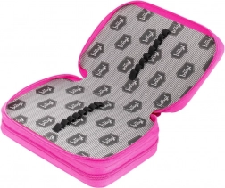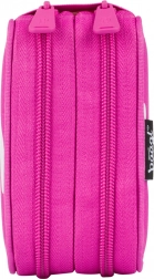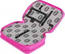 To-etagers skole penalhus i lyserødt design med logo og forstærket ryg for nem håndtering. Kvalitetselastikker muliggør opbevaring af selv store trekantede farveblyanter. Desuden er det udstyret med en lille lomme til mønter eller småting.