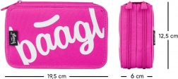 Stilfuldt og praktisk to-etagers skole penalhus i lyserød farve med logo er perfekt til daglig brug for skolebørn. Det er designet til at være robust og uundværligt: