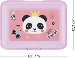 Den rosa Panda madkasse er et fremragende valg til daglig brug. Fremstillet af kvalitet plast, hvilket sikrer holdbarhed og nem vedligeholdelse. På låget finder du et sødt design af en panda med krone og teksten Hello Panda, der vil glæde enhver dyreelsker.
