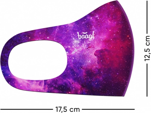 Stilfuld og funktionel maske fra BAAGL til voksne med et aktivt lag af mikrofibre med sølvioner for effektiv beskyttelse mod mikroorganismer, allergener, pollen og smog. Tilbyder behageligt, åndbart materiale, hurtig tørring og mulighed for gentagen vask ved 60 °C.