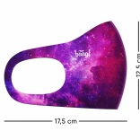De praktiske egenskaber sætter du pris på på arbejde, i byen og på rejser – den beskytter dig også mod allergener, pollen og smog. For lang levetid kan masken vaskes gentagne gange ved 60 °C (uden strygning). Galaxy-designet giver dit outfit et moderne udtryk.