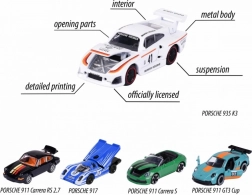 Bilerne er fremstillet under officiel PORSCHE-licens, med realistiske proportioner, autentiske prints og markante karrosseridetaljer.